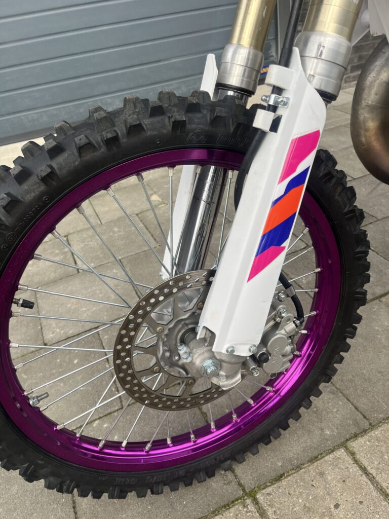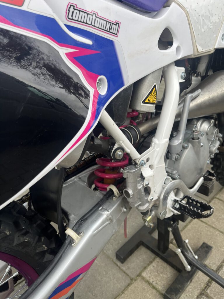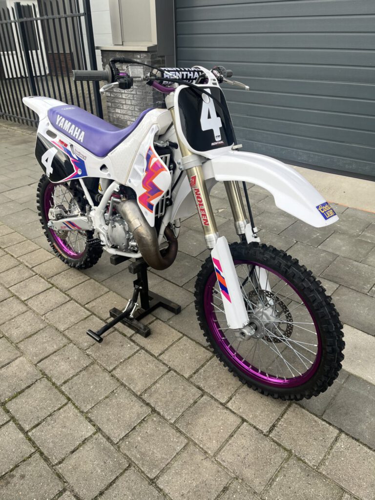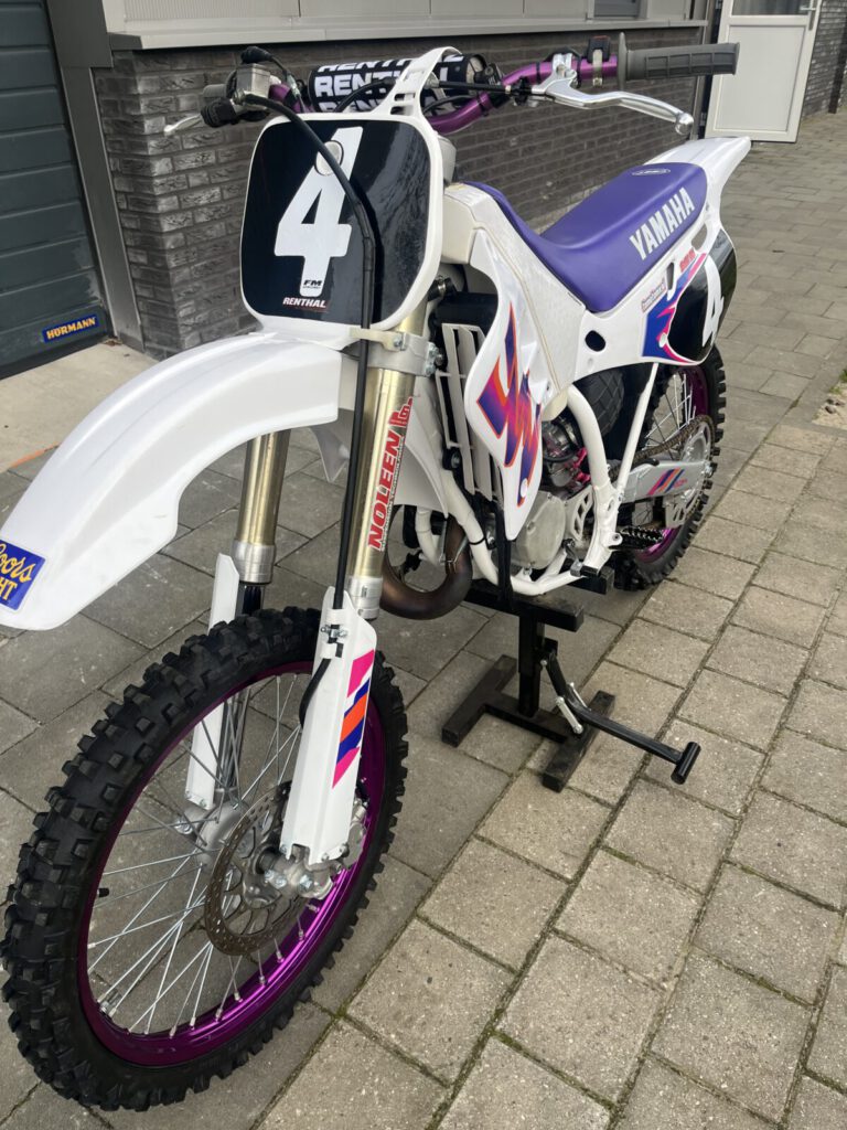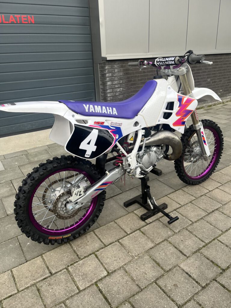 Beautiful Yamaha yz 125 1995 performed in 1993 looks. Completely restored, with many new parts. Chassis all bearings, new tires, rims spokes, chain and sprockets, suspension service etc. Engine is overhauled by us, new piston and connecting rod (wossner) bearings, clutch and gearbox overhauled. Has a front fork from a newer model, but the original 43mm is included. Motorcycle has been tested on the motocross track and the cylinder head has been slightly modified for more compression and a squish of 1.0 mm for more power.