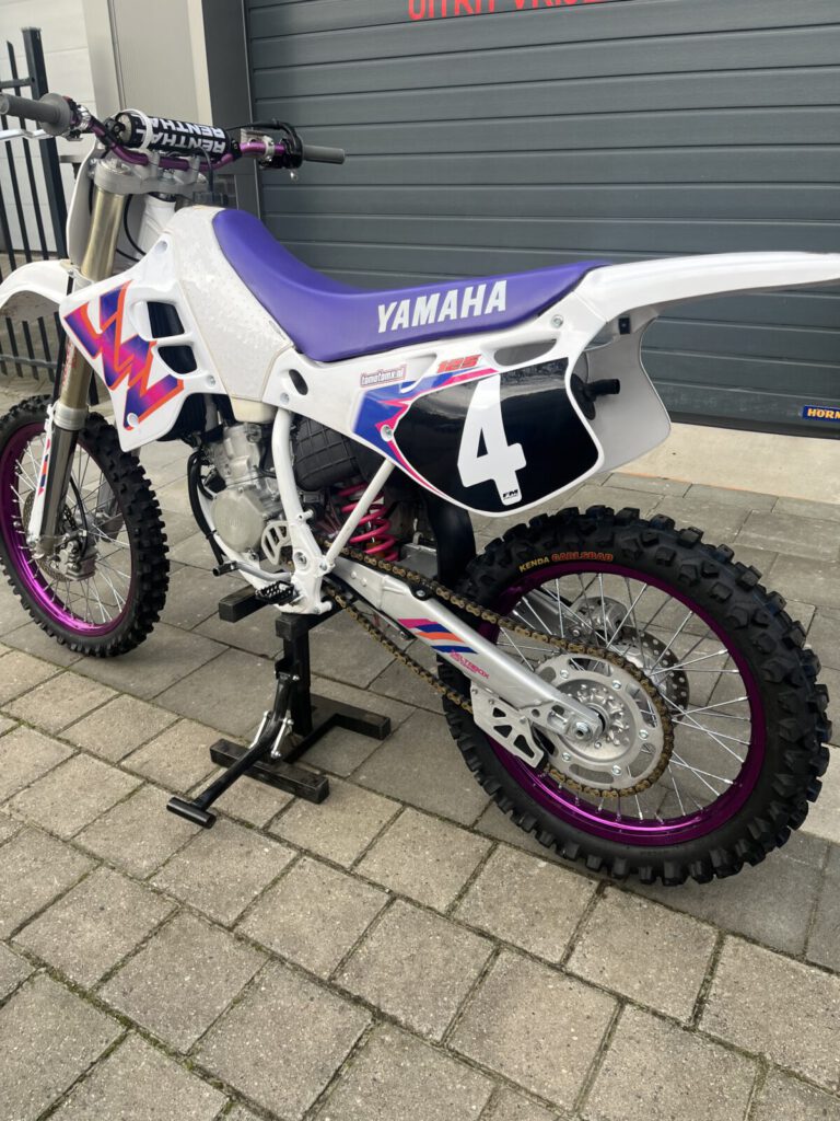 Super mooie Yamaha yz 125 1995 uitgevoerd in 1993 looks . Compleet gerestaureerd, met heel veel nieuwe onderdelen. Rijwielgedeelte alle lagers , nieuwe banden velgen spaken , ketting en tandwielen , vering service etc . Motorblok gereviseerd door ons , nieuwe zuiger en drijfstang ( wossner ) lagers , koppeling en versnellingsbak gereviseerd. Zit een voorvork van een nieuwer model op maar de originele 43mm is er bij . Motorfiets is getest op de crossbaan en de Cilinder-kop is iets bewerkt voor meer compressie en een squish van 1.0 mm voor meer vermogen . Op